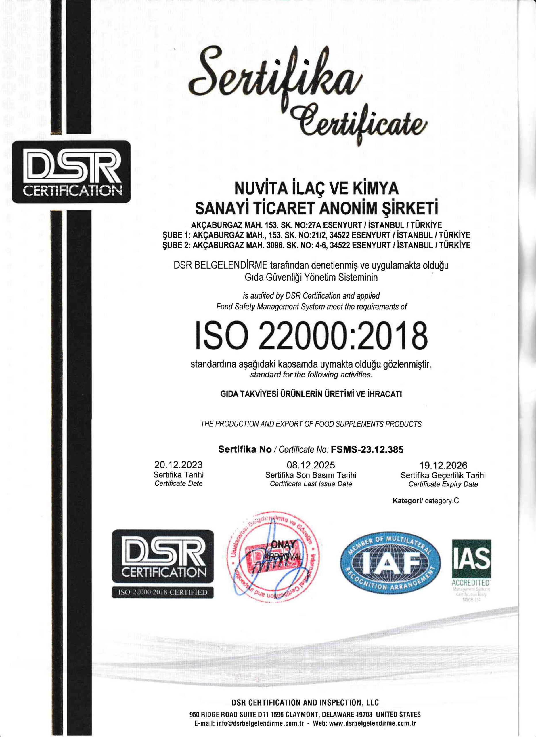 FDA Sertifikası 2025